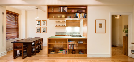 The first phase of this project consisted of plastering and painting all rooms, as well as restoring all of the original woodwork. Custom-made reproductions of the original doors were manufactured and installed. The woodwork was reproduced to closely match the original throughout the apartment. Steel door frames and casings where stripped, repaired, and repainted.