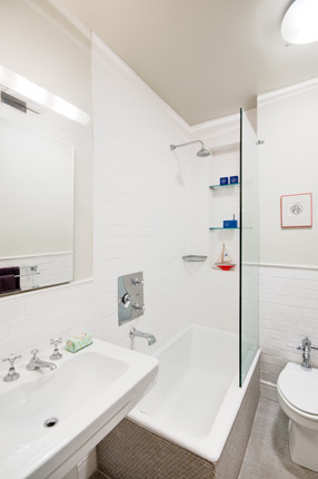 A year later, two bathrooms where completely retrofitted with a new tub, fixtures and tiles.